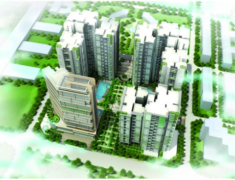 Tổ hợp công trình nhà ở cao tầng, văn phòng làm việc, siêu thị dịch vụ có vị trí tại 671 Hoàng Hoa Thám - Ba Đình - Hà Nội, được xây dựng trên khu đất có diện tích 9.243 m2.